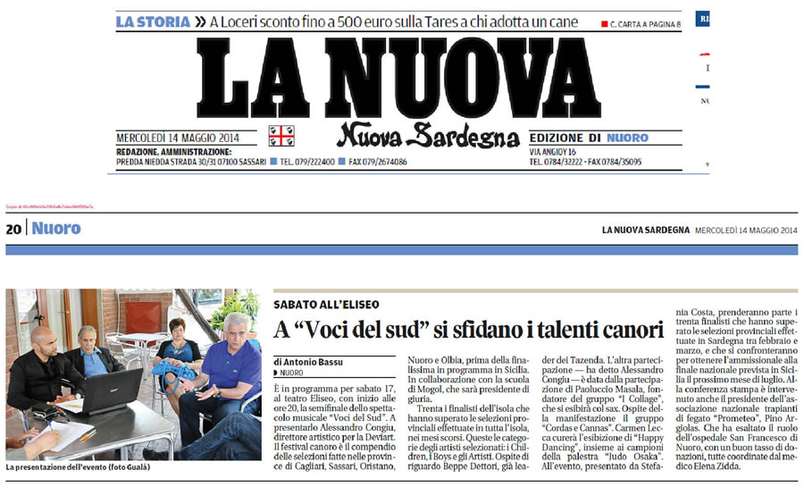 Nell'immagine l'articolo sulla conferenza Stampa pubblicato su La Nuova Nuova Sardegna.