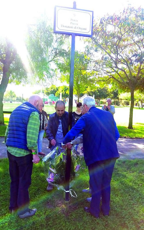 Oggi 2.11.17 un gruppo di trapiantati di Cagliari e comuni vicini, si sono recati al Parco di Terramaini dove nella parte centrale c’è un grande spazio dedicato al Donatore di Organi e una targa bianca bifacciale lo ricorda ai passanti.