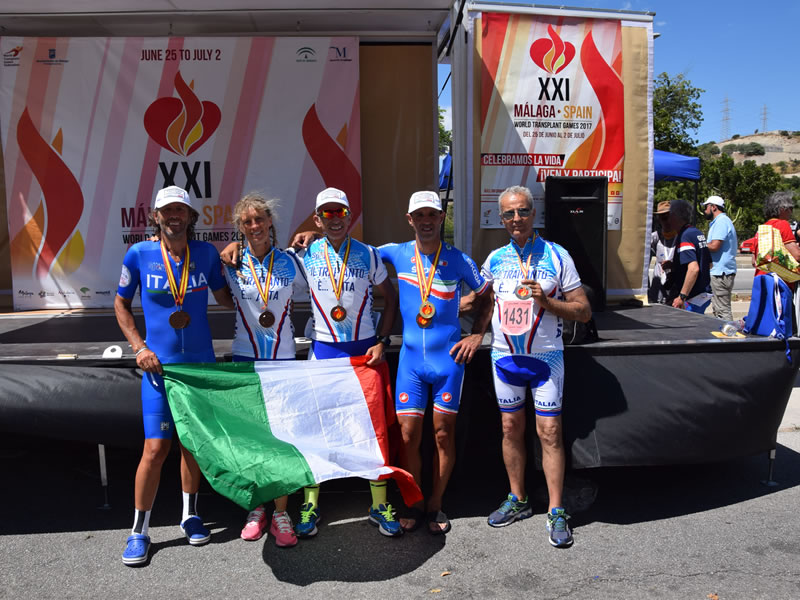 Si è conclusa ieri, 2 luglio 2017, con il rientro a Cagliari, l’avventura dei 5 atleti sardi in gara alla XXI edizione dei Giochi mondiali per trapiantati (World transplant games - WTG), che si è svolta a Malaga, in Spagna: Walter Uccheddu, socio dell’Asnet, e quattro trapiantati soci della Prometeo AITF Onlus (Stefano Caredda, Giovanni Fadda, Paolo Perra ed Enrico Pitzalis). Con loro in gara circa 2.000 atleti provenienti da 52 diversi Paesi.