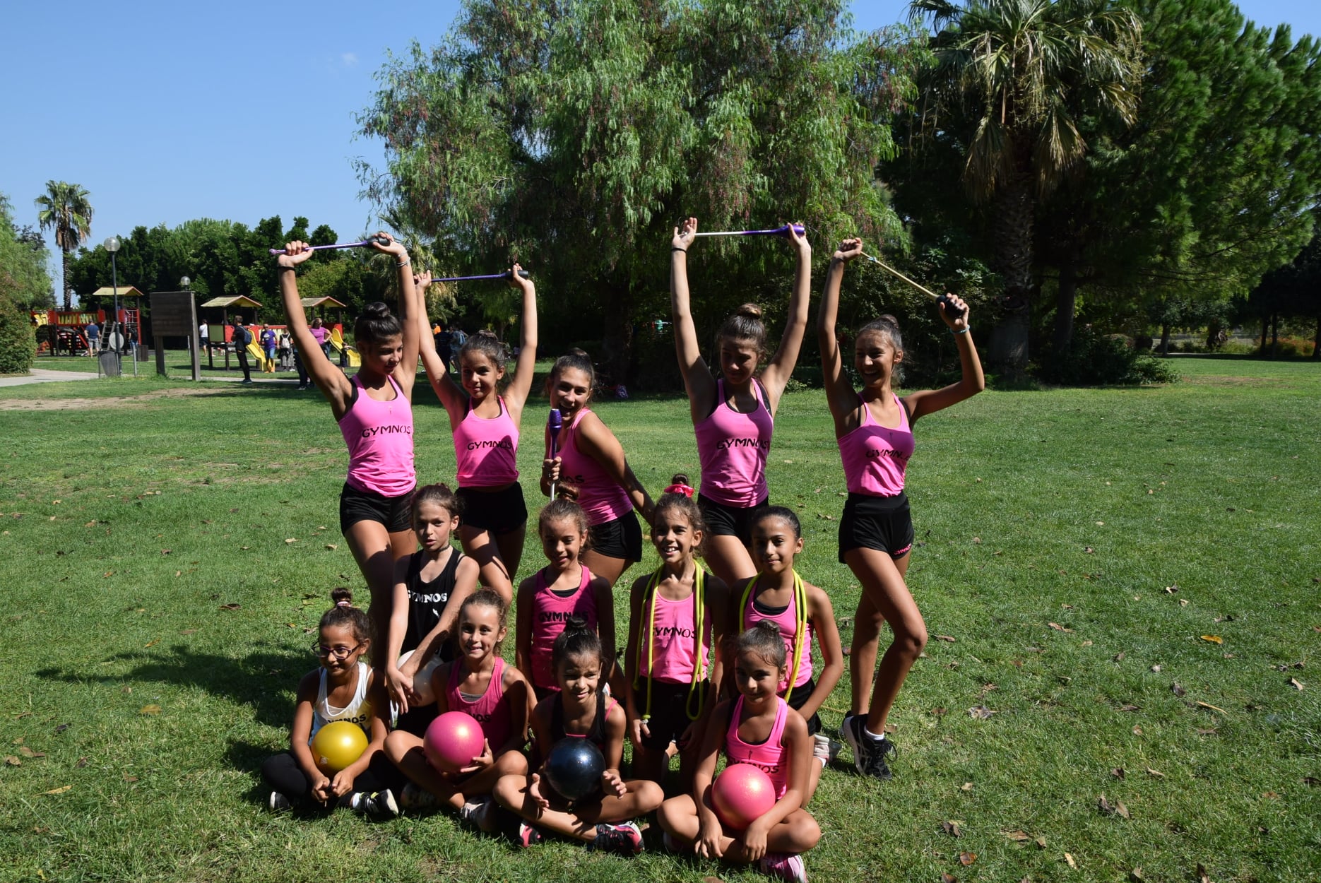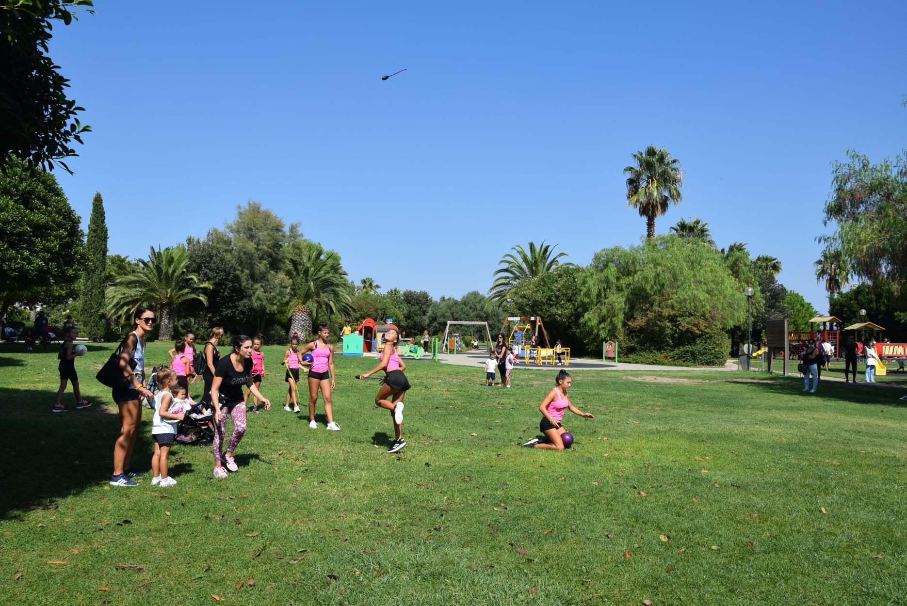 Un bello spettacolo di promozione della Ginnastica artistica e Ritimica in un parco che si presta a queste attività anche all'aria aperta.