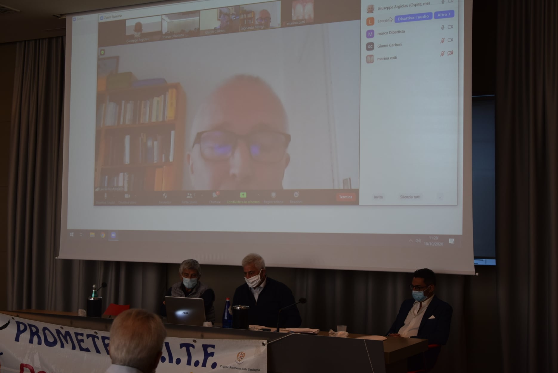 Si è svolta il giorno 18 ottobre 2020 l'assemblea regionale dei soci della Prometeo Aitf Odv al THotel di Cagliari, in video collegamento con gli amici di Sassari presso l'hotel Carlo Felice e con il Vice presidente dell'Aitf Nazionale Leonardo Mongiello oltre ad altri soci che hanno chiesto di potersi collegare con Zoom.