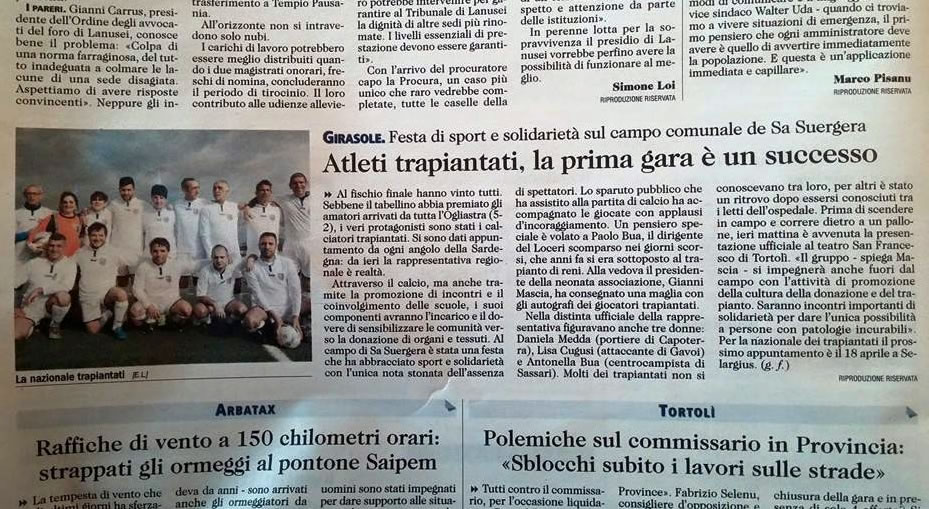 Sabato 7 Marzo 2015, a Girasole in Ogliastra, si è giocata la prima partita di calcio della Rappresentativa Sarda Trapiantati.