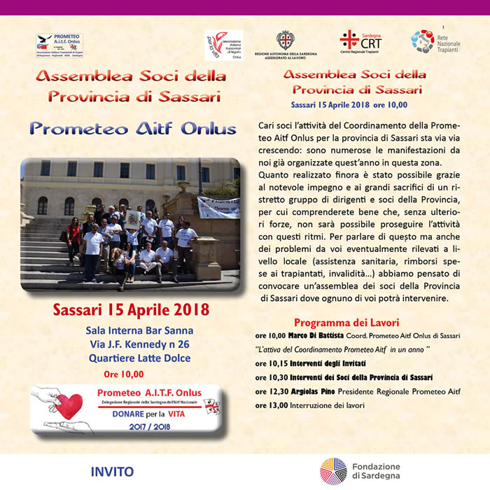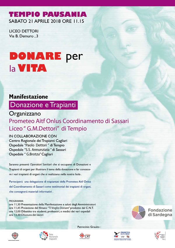 Sabato 7 aprile 2017, a Nureci, sono ripresi gli incontri organizzati dalla Prometeo AITF Onlus regionale in collaborazione con le amministrazioni comunali per promuovere la donazione di organi.