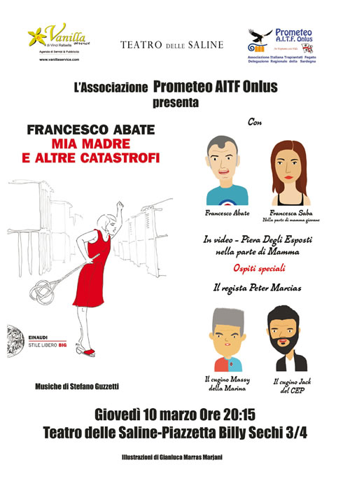 Giovedì 10 marzo 2016, con inizio alle ore 20.15, sarà presentato per la prima volta a Cagliari, al Teatro delle Saline in piazza Billy Sechi n. 3/4, “Mia madre e altre catastrofi”, ultimo libro di Francesco Abate.