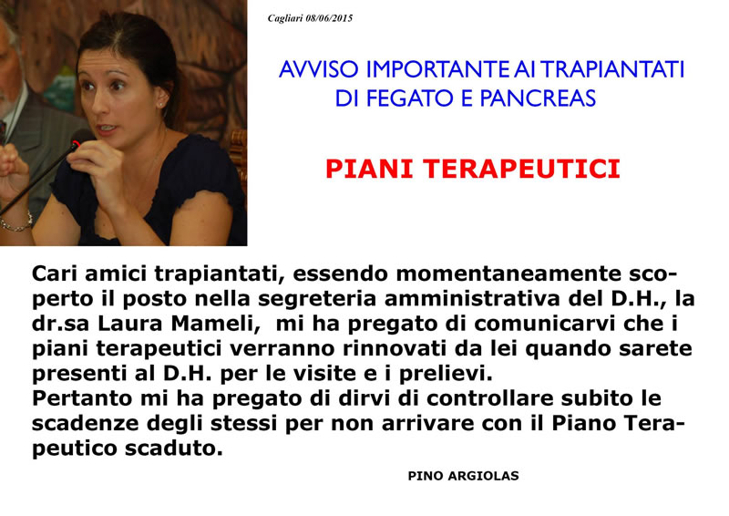 AIDO Regionale e Comunali Onlus, A.S.U. Onlus , ASNET Onlus, Ass.”Elisa Deiana” Onlus, LOVE for LIVER for LIVE Onlus SASSARI, Ass. ”Marta Russo” Onlus , PROMETEO AITF Onlus, , ASSOCIAZIONE SARDA TRAPIANTI Alessandro Ricchi