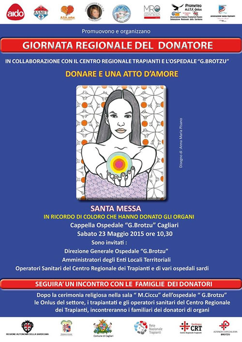 Sabato 23 maggio 2015 si svolgerà a Cagliari, presso l’ospedale "G. Brotzu", la Giornata regionale del donatore, organizzata dalle associazioni AIDO regionale e comunali, ASNET Onlus, Associazione Sarda Trapianti Onlus, ASU Onlus, Elisa Deiana Onlus, Love for Liver for Life Onlus di Sassari e Prometeo AITF Onlus.