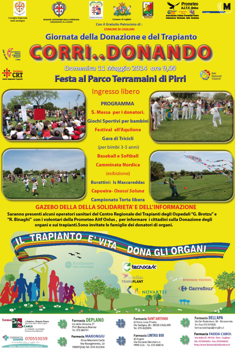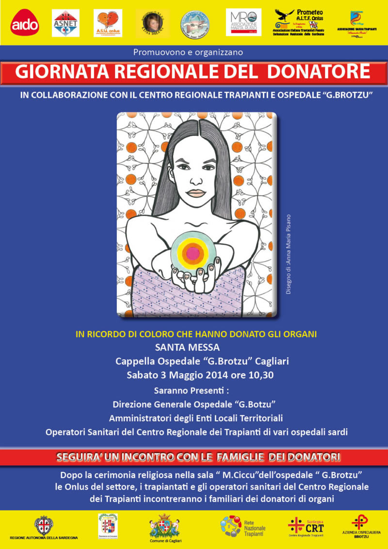 Sabato 3 Maggio 2014 le Associazioni AIDO, ASNET, ASU, Elisa Deiana, Love for Liver for Live, Marta Russo, PROMETEO AITF, Ass. Sarda Trapiantati in collaborazione con il CENTRO REGIONALE TRAPIANTI e l'ospedale G. BROTZU promuovono e organizzano la