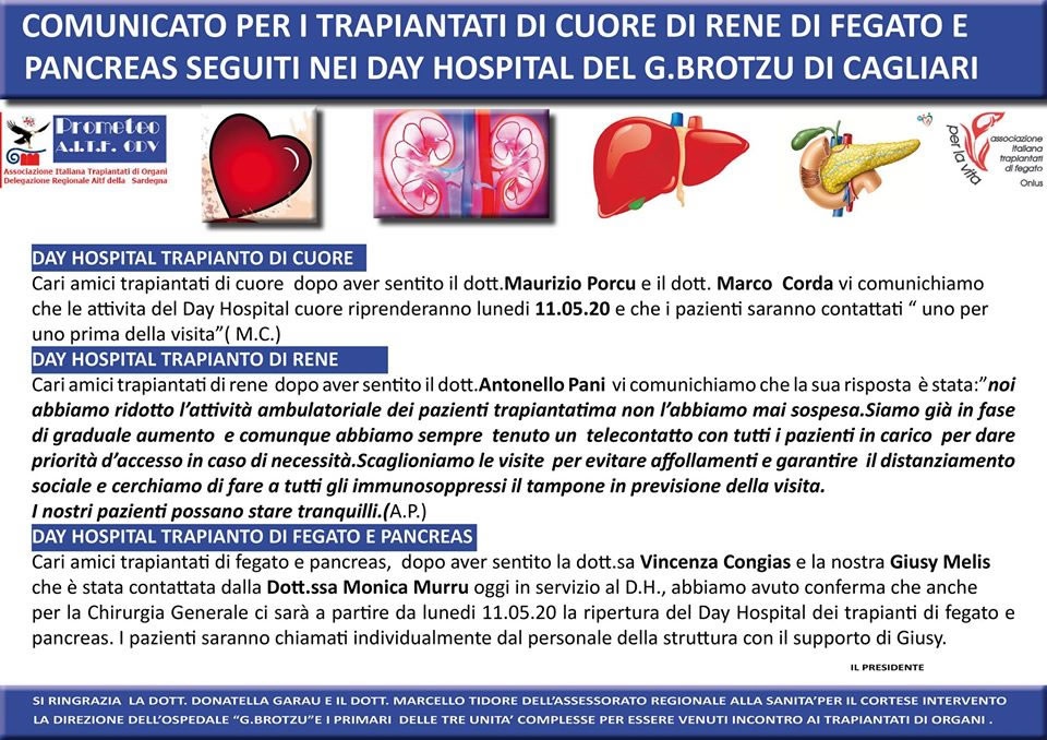 La Prometeo ha avviato una raccolta fondi per donare ai Centri trapianti del “Brotzu” (e altri reparti “collegati”) termoscanner e altri materiali utili ad affrontare l’emergenza causata dal COVID-19.